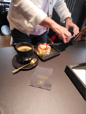 Die Patisserie "Johanna" in der Speicherstadt ist in edlem Gold und Schwarz